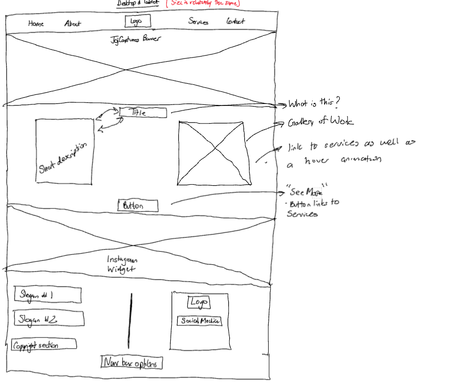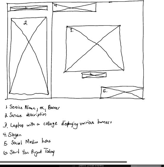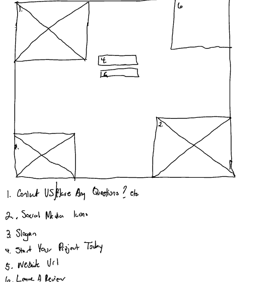 I began with hand‑drawn wireframes to outline the site’s structure. These sketches helped me plan how visitors would move through the header, body, and footer, ensuring a clear flow from navigation to business identity to services and to contact options.