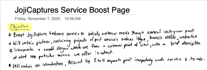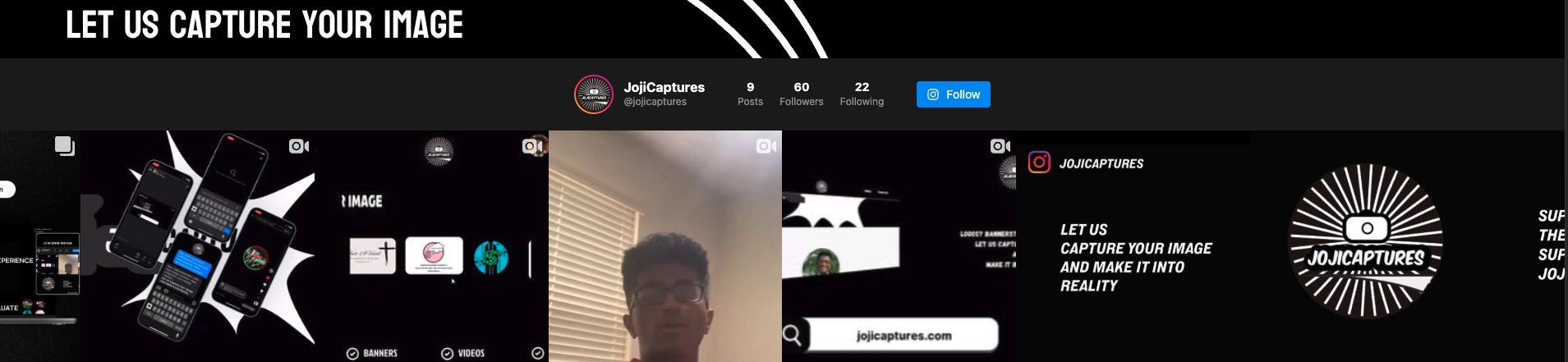 JojiCaptures lacked a strong visual presence and clear messaging around its services. Potential clients struggled to understand what was offered, and the brand wasn’t gaining traction online. Without a compelling way to showcase capabilities, outreach and engagement remained limited.