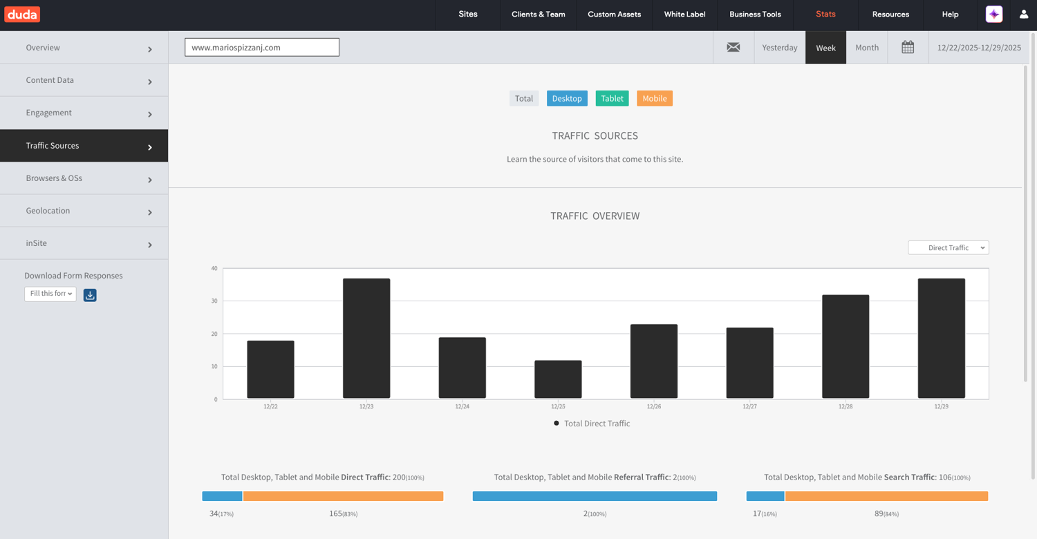 After several months of collaboration, we delivered a polished, user‑centered website for Mario’s Pizza that strengthened both customer experience and online visibility. I guided the client through each design decision, showing how choices around layout, hierarchy, responsiveness, and content structure supported clarity and usability. Because of these design choices, the site saw a significant rise in engagement: mobile traffic grew to 83% of total visits, the homepage reached 540 views with an average time on page of 1 minute and 37 seconds, and 28 direct “Click to Call” actions were recorded—clear signs of stronger customer interest and easier access to key actions. Search traffic also increased to 106 visits, reflecting improved SEO through cleaner structure, optimized metadata, and more accessible content. These results showed how intentional UX and SEO‑driven design can elevate a small business’s visibility, customer flow, and brand recognition. This project strengthened my ability to translate business goals into practical design decisions, communicate effectively with clients, and design for real customer journeys. It also reinforced core UX/UI skills—research, user empathy, visual hierarchy, responsive design, and iterative problem‑solving—demonstrating my readiness to add value in a professional environment through customer experience, client acquisition, and high‑quality digital products.