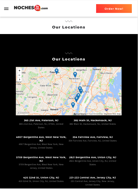 During my internship as a Web Designer at SKY Marketing LLC, I was tasked to redesign Noches To Go, a centralized online ordering platform for multiple Noches de Colombia locations across New Jersey. The goal was to create a responsive, modern website that allowed users to browse menus, select their preferred location, and place orders seamlessly through our ordering platform, SKY Digital Ordering. The redesign needed to elevate the brand’s digital presence, reflect its cultural identity, and deliver an app‑like experience that felt intuitive, fast, and visually engaging.