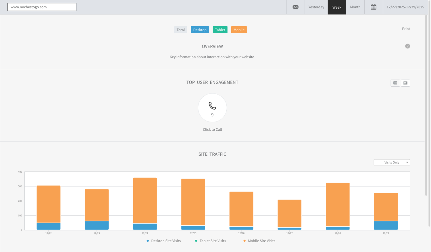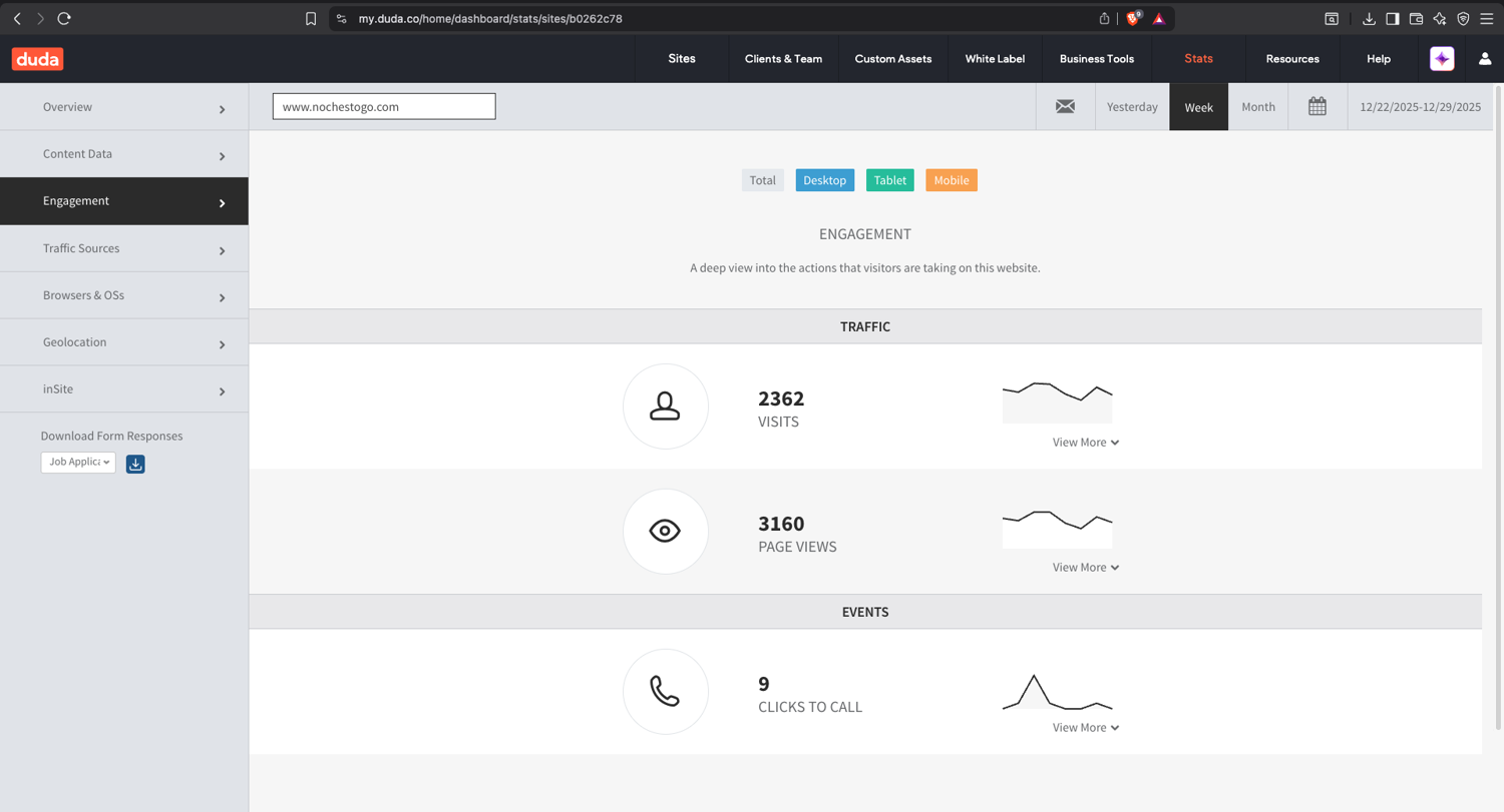 The final Noches To Go website brought together a clean, modern, and cohesive digital presence that made ordering simple across multiple restaurant locations. I focused on intuitive navigation, strong visual hierarchy, and clear “Order Now” pathways, supported by a fully responsive layout that aligned with real user behavior—mobile users accounted for 87% of all visits and 86% of page views, making mobile‑first design essential to the platform’s success.