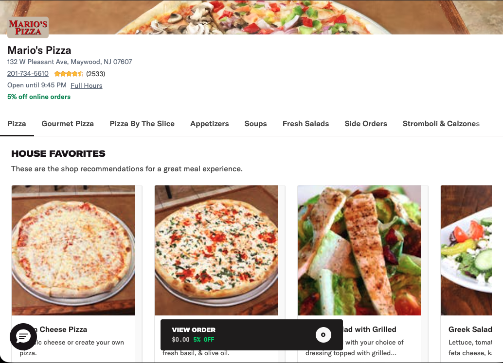 Marios Pizza Website