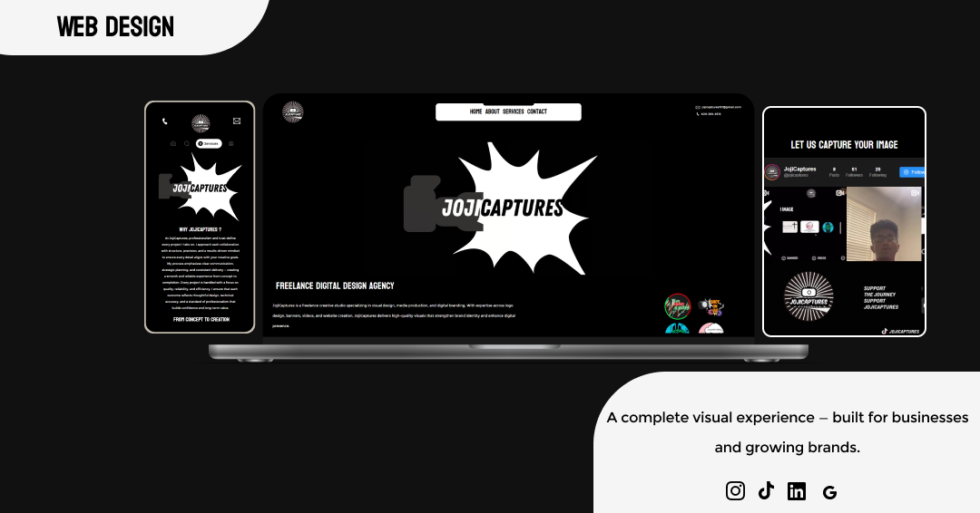 The redesign also created measurable value for the business. JojiCaptures saw increased recognition within local creative circles, more inquiries from potential clients, and stronger networking opportunities through shared work and referrals. These outcomes demonstrated how intentional design can elevate even a small freelance brand, helping it stand out and build trust.