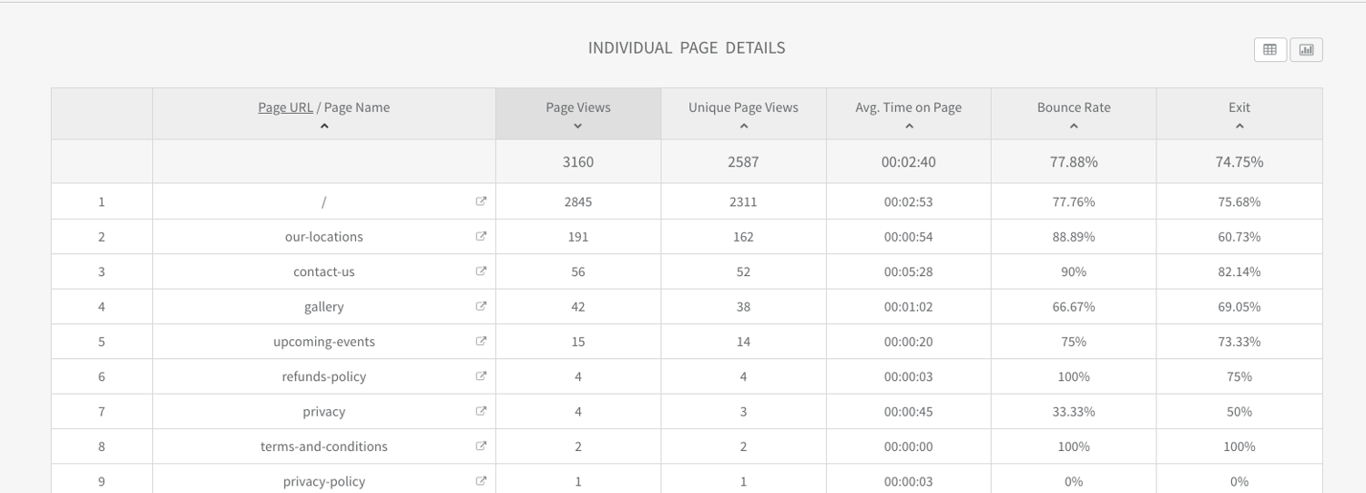 As you review this case study, you’ll see how the redesign translated directly into stronger engagement. The homepage reached 3160 views with an average time on page of 2 minutes and 40 seconds, while the “Our Locations” page saw 2845 views with similarly strong engagement. Internal navigation performed especially well, generating 415 page views with a bounce rate of just 20.22%, compared to over 55% on search traffic and 61% on direct traffic. Across the week, users generated 2362 total visits, 3160 page views, 9 click‑to‑call interactions, and more than 2400 newsletter impressions—clear signs that the refined layout and interaction patterns encouraged deeper exploration and more meaningful actions.